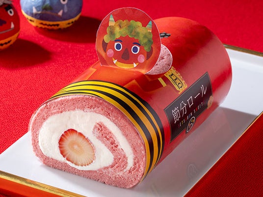 「節分ロールケーキ」は、2025年1月23日(木)から美味しくリニューアルした紅白2色のロールケーキに、節分らしく赤鬼・青鬼の巻紙でラッピングしました。ぜひ2本セットで並べて節分気分を盛り上げるとともに、2種を食べ比べてお楽しみください。