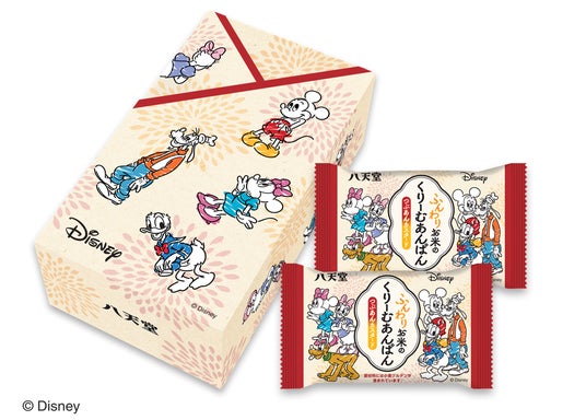 ディズニーデザイン「ふんわりお米のくりーむあんぱん つぶあんカスタード」八天堂店舗で新発売!お手土産にぴったりの専用BOX入り
