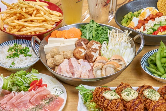 学校やお仕事帰りに仲間と楽しいひとときをお過ごしいただけるよう、当店では複数のコースメニューをご用意しております。団体でのご宴会や貸し切りにも対応可能です。また、たくさんお飲みになる方に向けて、お得な単品飲み放題メニューもご提供しております。