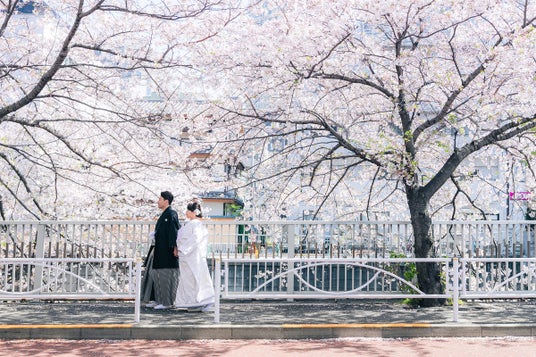 【ホテル雅叙園東京】約4kmにわたり桜並木が広がる目黒川での絶景写真「フォトウエディング~SAKURA~」