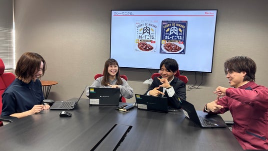 また、ブランド名でも"肉を堪能するレトルトカレー"というコンセプトやワクワク感を伝えるため、44もの名称候補の中から「カレーでニクる。」というキャッチーなネーミングに決定。肉を堪能する世界観が伝わる斬新なパッケージデザインと合わせて、今までにないレトルトカレーになるよう工夫を凝らしました。