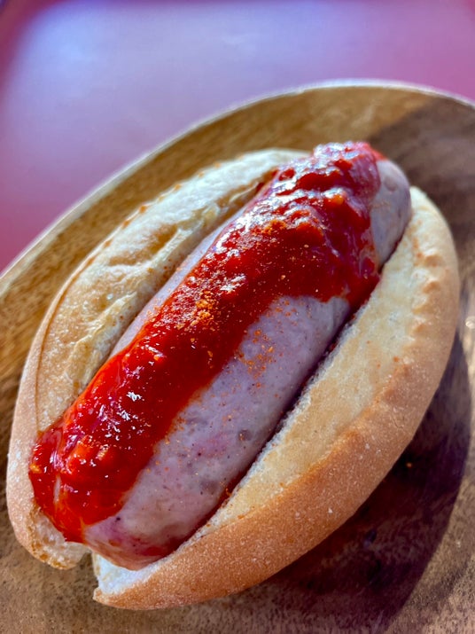 奈良のあやめ池北店でも人気のカリーブルストはドイツ・ベルリンのソウルフードである「カリーブルスト」を再現し、ケチャップにカレーパウダーをかけています。