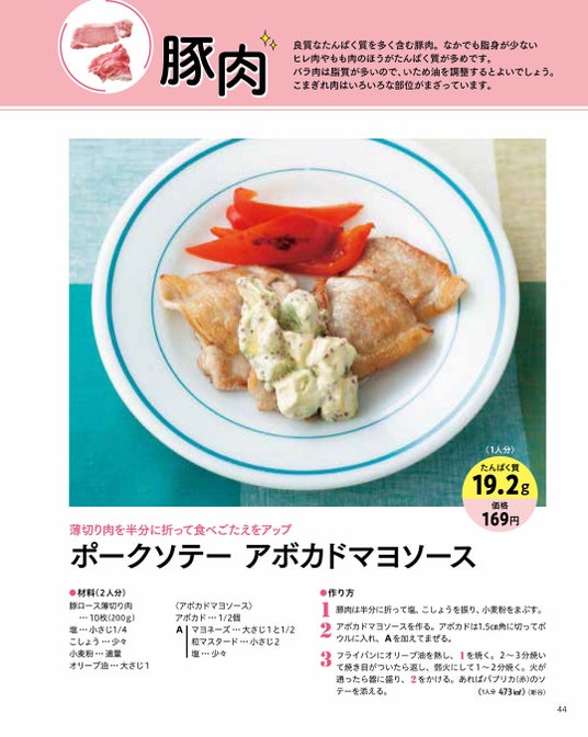冷蔵庫にあるものや、スーパーの特売の肉で作ったり、冒頭にある「たんぱく質一覧表」を参照しながら、「より高たんぱくな食材」を選んでレシピを決めるのもおすすめ。