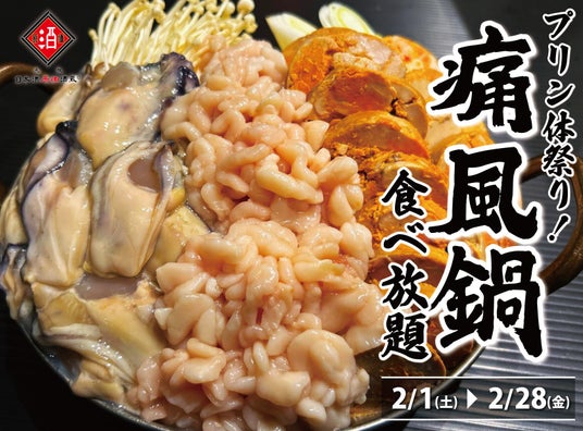日本酒原価酒蔵(http://sake-genkabar.com) では、牡蠣、白子、あん肝が贅沢に入った"痛風鍋"食べ放題を2/1(土)~2/28(金)まで全店で実施致します。