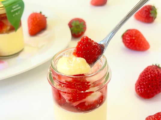 全国でも有数のいちごの生産地である静岡県産いちごを厳選仕入れ。大き目サイズにカットしたいちごがゴロゴロ。甘酸っぱいいちごが、とろんとなめらかな旬実堂のプリンによく合います。春を感じる季節限定販売です。
