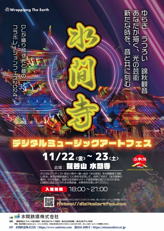 水間寺を舞台に、プロジェクションマッピングや長谷川章氏の「デジタル掛け軸」を駆