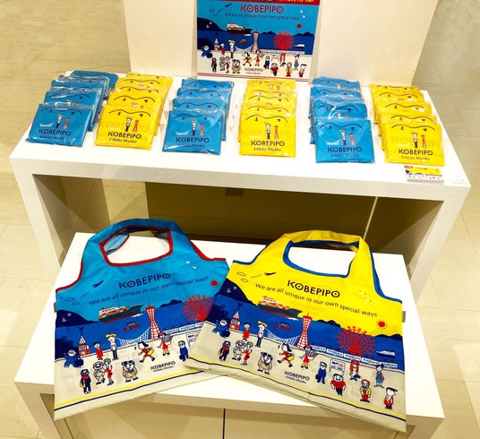 神戸ご当地ブランド「コベピポ(R)」は神戸の名所を背景に、人と街をモチーフとしてデザインしています。「持って帰れるPOPな神戸」をコンセプトに、カラフルな色合いの大きく丈夫な生地で作ったエコバッグです。一番の人気商品です!