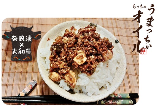 「もっちのうまっちぃオイル漬け」は、奈良が誇る和牛ブランド「大和牛」や「大和肉鶏」を奈良漬と一緒に特製オイルに漬け、隠し味には、うどんだしつゆやクリームチーズ、山椒などを調合。白ご飯はもちろん、パスタソース、サラダ、パン、おつまみなどにも使える絶品の一品となっています。