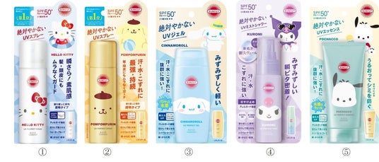 毎年多くのお客さまからご好評をいただいております『サンカット(R)』限定パッケージを今年も発売致します。今年は、ブランド初となる、『サンリオキャラクター』とコラボレーションし、「ハローキティ」「ポムポムプリン」「シナモロール」「クロミ」「ポチャッコ」※1、それぞれの顔が商品の表面に大きく描かれた限定パッケージです。今年も主力商品を中心に、使用感や使用シーンで選べる5タイプをラインナップしました。