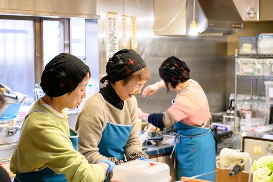滋賀県長浜市木之本町で地域の発酵食品の継承を目的に活動している、book cafeすくらむの「発酵オカン」。木之本の発酵文化を継承していくために発酵食品を通じて家庭や町、社会へ大きな愛情を注ぎ続けています。メンバーは全9名、木之本のご出身の方はもちろん、移住やご結婚などの縁によりこの地で暮らしています。愛情あふれ、優しい笑顔のオカン達が家族や友人が遊びに来た時と同じようにお客様にランチを提供し、発酵食品を一緒につくります。また、オカンが生活に取り入れている発酵食品についても楽しく話し、初めて会うのにどこか懐かしさを覚える、そんな感覚にしてくれるオカンと特別な時間を過ごせます。