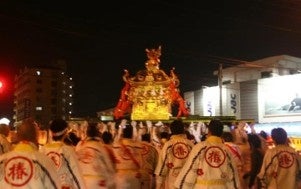 全面金箔に飾られた神輿が提灯の明かりに照らされ、静々と担ぎ出される様子は、とても幻想的です。