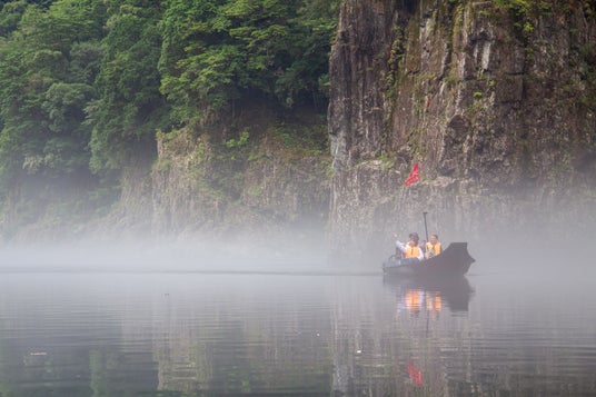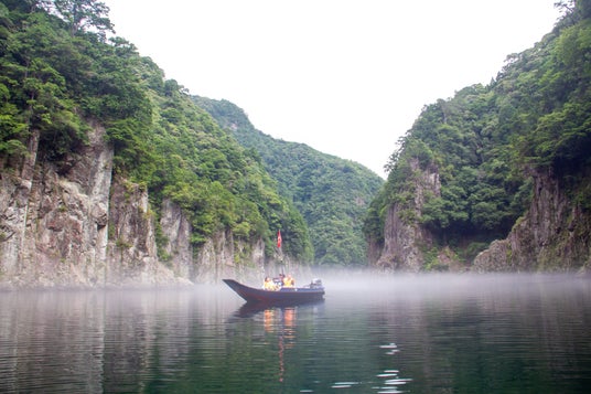 朝靄の瀞峡を川舟でめぐる