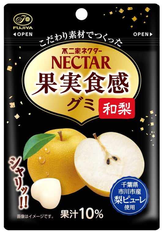 ・梨特有のシャリシャリ食感を再現した、まるで果実を食べているかのような食感のグミ