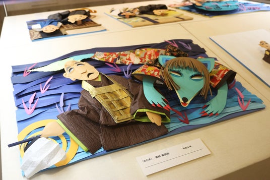 ペーパーアートの奥行きは、写真で見ても中々伝わりません。ぜひ会場に来てその迫力をお確かめください!榊原さんの作品は、色紙だけでなく和紙や包装紙など、人・もの・背景に合わせて様々な紙を使っています。そんな随所に散りばめられた工夫を探すのも面白いです。