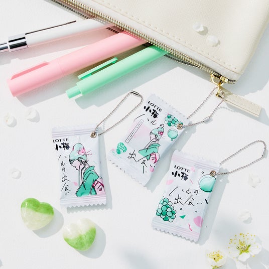 キャンディには和歌山県産南高梅果汁を使用し、これまで小梅がこだわってきたあまずっぱい梅の味わいが楽しめることはもちろん、個包装はミニチュアパッケージキーホルダーにリメイクしてもかわいいデザインにしました。「小梅の魅力はキャンディだけではない」ということ、小梅ちゃんの初恋物語を含めて、小梅の世界観をたっぷりお楽しみいただける商品にしました。