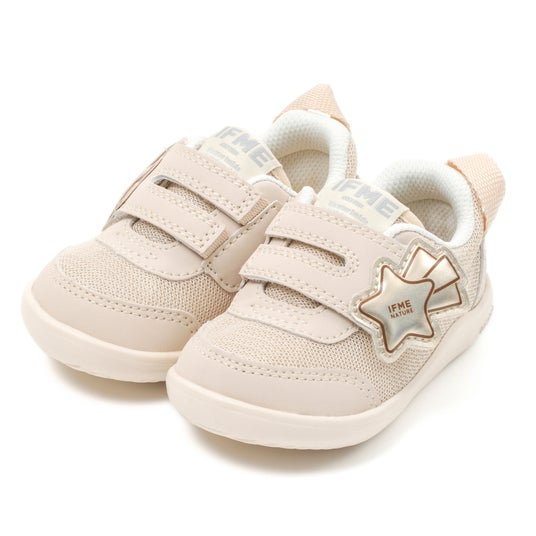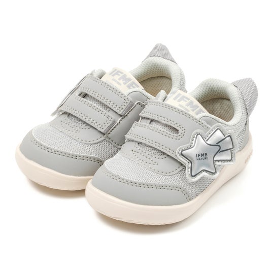 春夏の新作では、IFME定番のワンベルトタイプをベースに、人気のほうき星モチーフを添えた「ifme nature ワンベルト ほうき星スニーカー」が登場します。カラーはグレー・ベージュの2色を展開。落ち着きのある色合いに、メタリック感のあるモチーフが映える、かわいらしいアイテムに仕上げました。アッパーには「ワンベルト」仕様を採用し、シンプルな使い心地で日常使いしやすい一足となっています。