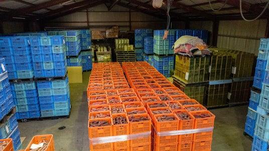 一面に並ぶ「紅はるか」の貯蔵庫、多いときで約50トンあるそう
