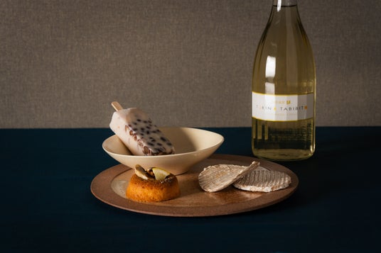 界 由布院に広がる棚田で育つ稲から着想を得て、米のポン菓子を乗せました。セットには大分銘菓ビスマン(*3)も加わり、小麦の生地やポン菓子を通して広がる麦焼酎の豊かな香りを楽しめます。