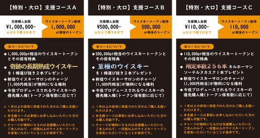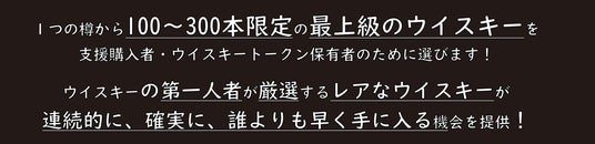 マスター・オブ・ウイスキーであるウイスキーの第一人者が厳選する極めて希少性の高い限定ウイスキーの先行購入権を、ウイスキートークン保有特典として用意致します。