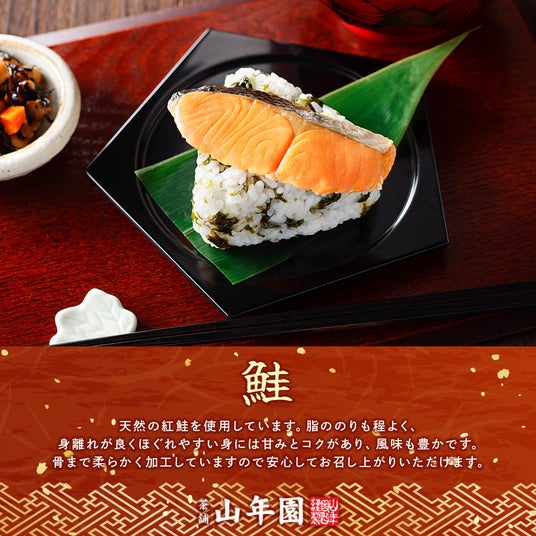 天然の紅鮭を使用しています。脂ののりも程よく、身離れが良くほぐれやすい身には甘みとコクがあり、風味も豊かです。骨まで柔らかく加工していますので安心してお召し上がりいただけます。