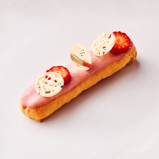 爽やかな酸味と優しい甘さのストロベリークリームに、ストロベリーのピュレを加えたホワイトチョコレートのグラサージュ。
