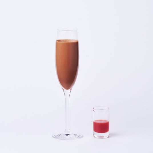 オリジナルクーベルチュールを使用した冷たいチョコレートドリンクに、香り高いストロベリーソースを添えました。お好みの量を混ぜ入れ、春らしい味わいをお楽しみください。