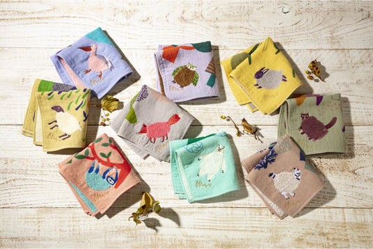 詩画作家・森田MiWとタオルメーカー楠橋紋織のコラボブランド。MiWさんのちょっと不思議であたたかな絵がタオルやハンカチ、暮らしのアクセントになるモノたちに映しだされます。毎日がもっとオシャレにハッピーに。しあわせの時間が流れます。