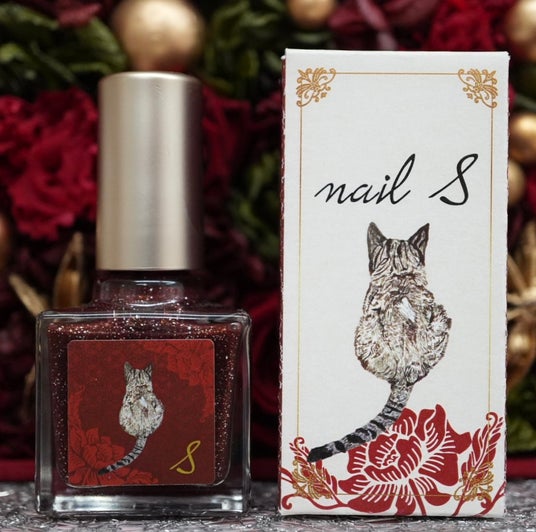 シアーで速乾、高品質なこだわりのネイルカラーブランド「ネイルエス」。蔦屋書店限定の「yume banashi」は濃密なレッドベースに多色ラメを散らばせた華やかなカラーです。重ねて色づく紅、着物に金の刺繍を施しているような艶やかな様を表現しました。