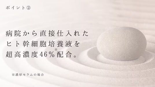 一般的には5%で高濃度と言われるヒト幹細胞培養液を、病院からの直接仕入れと製造会社との密な連携によって最大46%(※)の超高濃度配合に成功。細胞の力を活性化させることで「内側からキレイに」そして「使うほど肌が健康に」なることを目指しています。