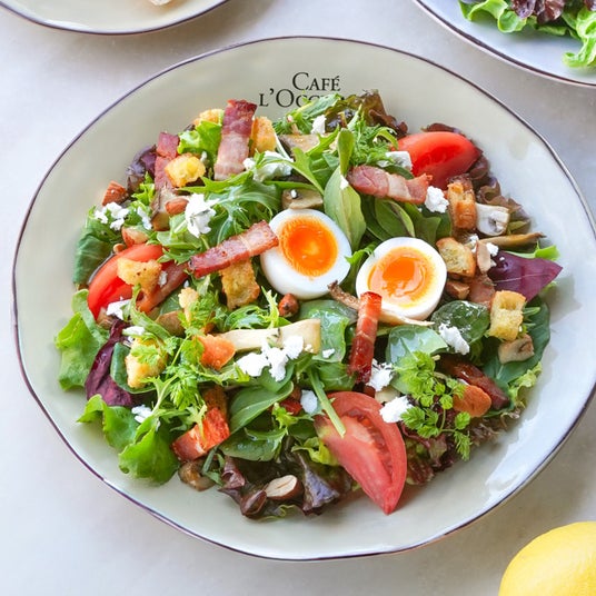 春限定のお食事メニューには、まるで草原にお花が咲いたような、南仏プロヴァンスの春の訪れを華やかに表現した、豊かな色彩のサラダが登場。香ばしいベーコンときのこ、まろやかな半熟卵、鼻にぬける爽やかなハーブのマリアージュをお楽しみいただけます。