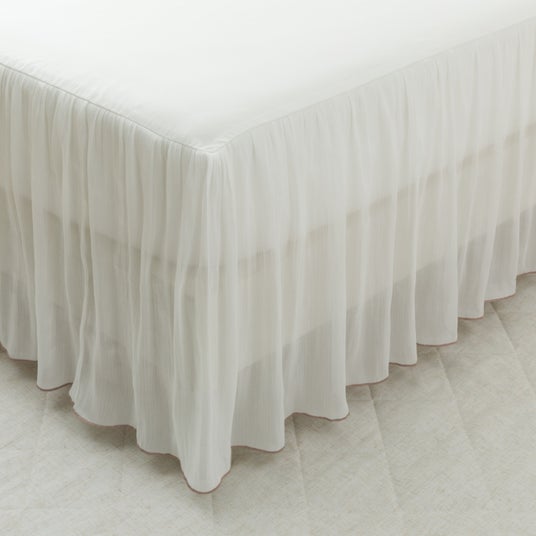 ブラウンのラインが入った透け感があるフリルのベッドスカートは、お部屋を優しくふんわりとした雰囲気にしてくれます。