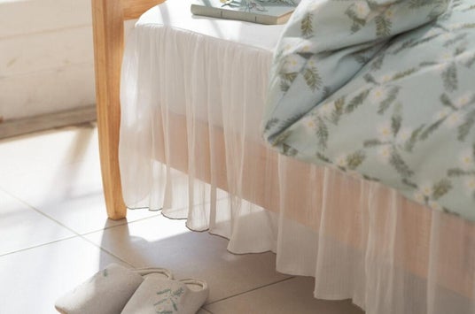 ベッドの脚やフレーム、ベッド下収納などを隠し、寝室をおしゃれな雰囲気にすることができるベッドスカート。ホコリがベッドの下に入り込むことを軽減する効果もあり、見た目のかわいさだけでなく実用性もあるアイテムです。
