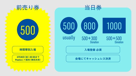 ※当日券もご用意しております。混雑緩和のために、入場時に必要なフォーム入力の事前登録を推奨しています。事前登録はこちらから。