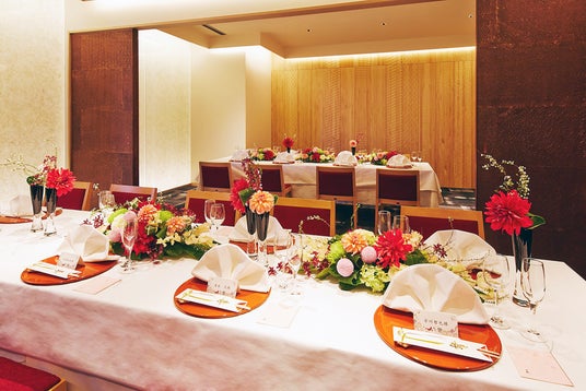 ご結婚を控えた新郎新婦とご両家の縁を結び、宴会場で、ホテル料理人が腕を振るう日本料理やフランス料理を愉しみながら、ご親睦を深めていただけるご結納・お顔合わせのプランをご用意