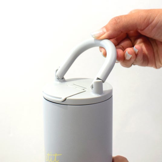 ハンドルは倒すことができるので、持ち運ぶときや飲むときに邪魔になりにくい。