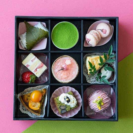 今回ご用意する「桜と抹茶のスイーツボックス」は、和と洋を組み合わせた9種類のスイーツで、春の訪れから新緑までの季節をお楽しみいただける期間限定メニューです。