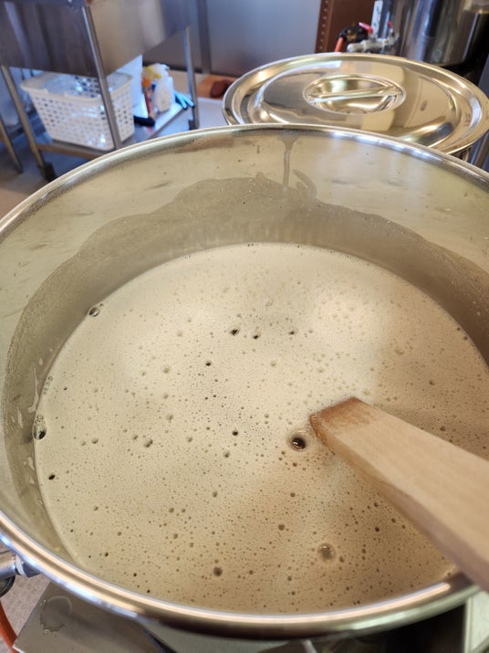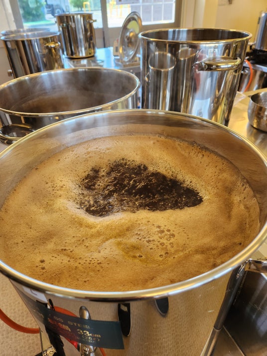- 糖化できた麦汁をろ過し、液体部分のみを煮沸鍋に