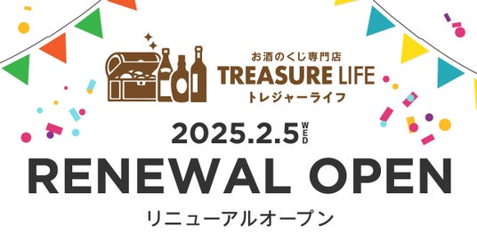 IENOMI LIFE -イエノミライフ-(運営:株式会社イズミセ)は本日2025年2月5日(水)よりお酒のくじ専門店『TREASURE LIFE -トレジャーライフ-』としてリニューアルOPEN致しました。