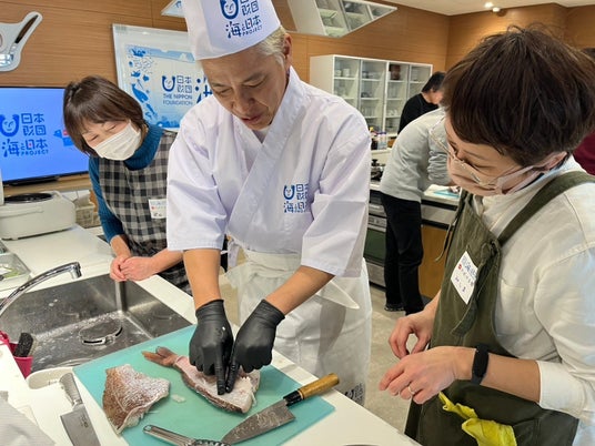 一般社団法人 海のごちそう推進機構とアエルグループは、魚を実際にさばくこと、地域の海洋変化や魚種の変遷を学ぶこと、さらに「海を味わう十の技法」による調理体験など、日本の豊かな海の食文化を継承し、輪を広げる取り組み「日本さばける塾 in アエルグループ」を1月30日(木)に開催し、15名の方が参加しました。