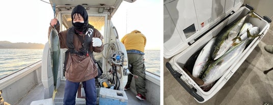 波に揺られながらもクーラーボックスがいっぱいになるまでハマチなど釣りあげることができました。