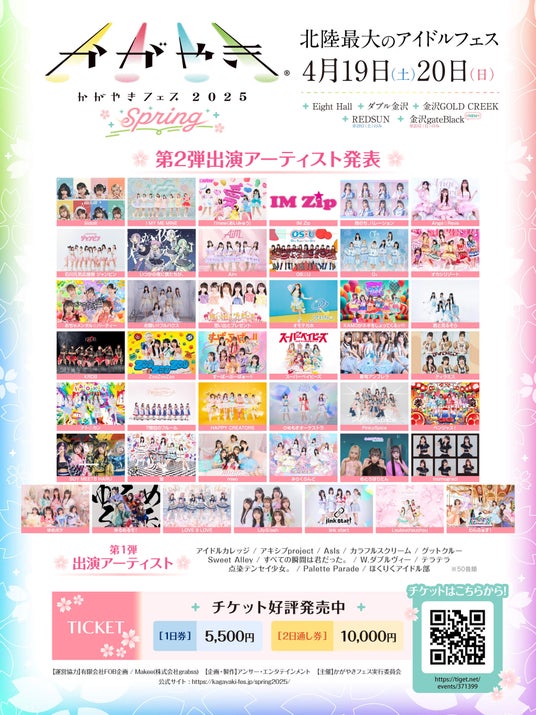「北陸を"音楽"で元気に!」北陸発信のスターを育成するプロジェクト『ほくりくアイドル部』を運営するアンサー・エンタテインメント(アンサー株式会社、代表取締役社長 有村勇志)は、2025年4月19日(土)・20日(日)の2日間にわたり、ライブハウス4会場にて開催する『かがやきフェスSpring 2025』の第2弾出演アーティストと、開催会場(金沢gateBlack ※20日のみ)を追加することをお知らせします。