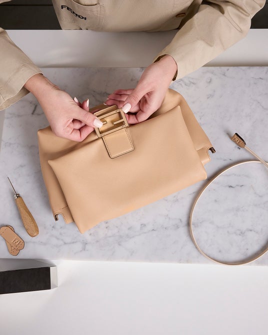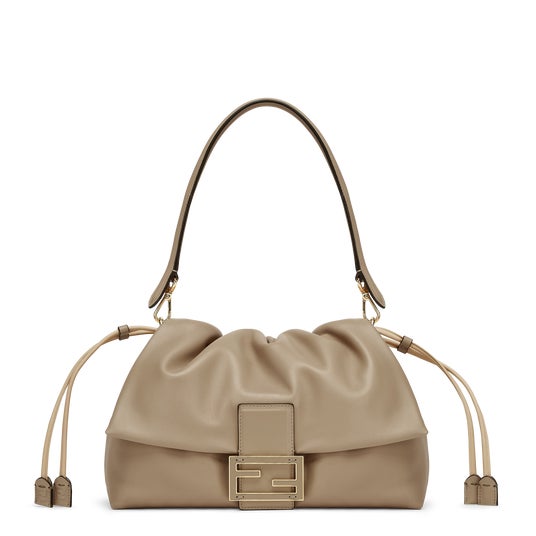過去と現在の対話において、2025年春夏 ウィメンズコレクションのうつろいやすさが響き渡るコンテンポラリーなひねりが加えられた「マンマ バゲット」は、オリジナルのコードを維持しながらも、ラグジュアリーでバターのようにやわらかなナッパレザーと、フェミニンなしなやかさを際立たせるドローストリング開閉という美しさが加えられています。またシグネチャーである「FF」ロゴバックルには、メゾンが誇るレザーグッズのヘリテージに敬意を表し、控えめなレザーのインレイが施されています。