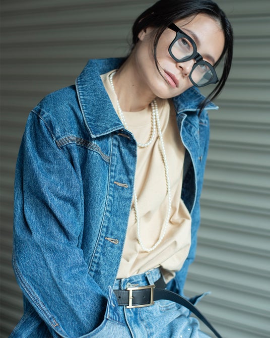 今季のデニム素材のアウターはリラックス感のあるオーバーサイズのデニムブルゾン。大人がかっこよく着られるデザインに仕上げています。