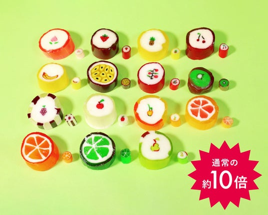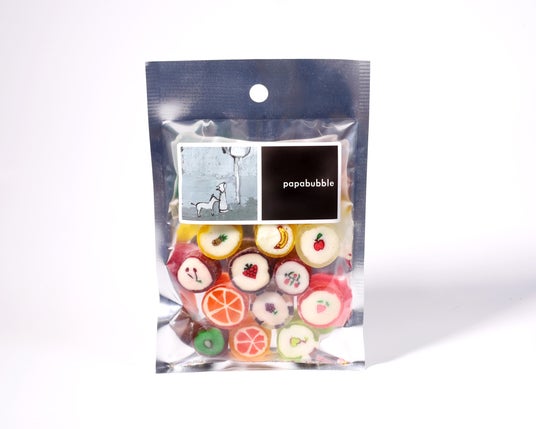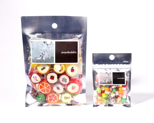 パパブブレの定番「フルーツミックス」が、通常の10倍のBIGサイズになって登場。おなじみのフルーツ柄と形はそのままに、 大きくなったことで職人の技が際立つ仕上がりになりました。そのまま食べるのはもちろん、 紅茶に溶かしてフレーバーティーにしたり、砕いてアイスやヨーグルトのトッピングにしたりと、さまざまなアレンジでお楽しみいただけます。