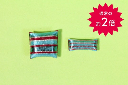 キャンディだけではありません。バブレッツも巨大化させました!グミ部分を大きくするだけではなく、周りの砂糖は大粒のザラメを使用し、ザクザクとした食感が楽しめる新しいバブレッツに仕上げました。大きさはなんと通常の12倍。1粒でお腹いっぱいになりそうな、満足感たっぷりなグミです。かぶりついて豪快に食べるもよし、ケーキのようにカットしてご家族・ご友人とシェアするもよし。いろいろな楽しみ方で驚きを体感してください。