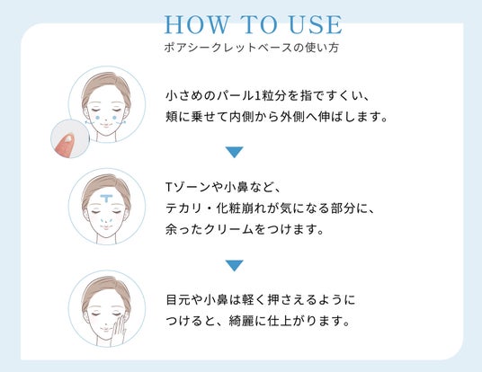 湿気や摩擦に強く、プライマーにありがちな乾燥や摩擦でポロポロとカスが出てくるといった心配がなく、しっかりとお肌を保湿しながら毛穴や凹凸をカバーします。ファンデーションの使用量を減らし、厚塗り防止にも繋がります。