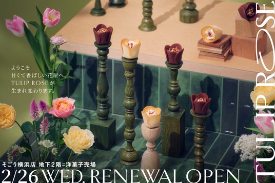 「ねんりん家」「東京ばな奈ワールド」などを運営する株式会社グレープストーン(本社:東京都中央区銀座)のスイーツブランド《TOKYO TULIP ROSE (TOKYOチューリップローズ)》が2月26日(水)そごう横浜店にリニューアルオープン。全品新レシピ・新デザインに生まれ変わるのに加え、ブランド初の極厚バターサンドも新登場します。