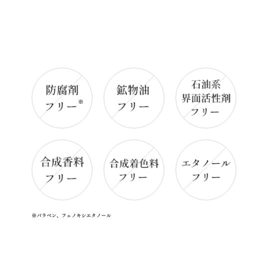 *⁴ 自然の力を活かし、自然の知恵を用いた抽出方法や保存方法を選択し、防腐剤(パラベン、フェノキシエタノール)、鉱物油、石油系界面活性剤、合成香料、合成着色料、エタノールを含まずに化粧品を作り、お届けすること。完然無添加(R)は、(株)長寿乃里、(株)イングの登録商標です。