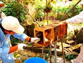 他の国産ニホンミツバチと遺伝的に異なる野生の二ホンミツバチで、対馬だけに唯一生息しています。対馬産蜂蜜は、希少なニホンミツバチが集めた様々な花や木の蜜を、機械を使わず原始的な採蜜法で集めた百花蜜です。パーフェクトフードと呼ばれ、約80%が糖分で空気中に含まれる水分を保持する性質があります。