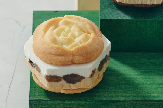 ミシュランシェフ御用達のブルターニュ産発酵バターを使用したラングドシャクッキーに、きめ細やかで軽い口どけに仕上げた2つのショコラクリームを絞りました。クリーミーさとコクをたっぷり味わえる北海道産ミルク仕立てのホワイトショコラクリーム。さらに、宮古島の雪塩が隠し味の香ばしい塩バターキャラメル風味のクリームでミルクのコクを深めています。ボトムに潜ませたパイの塩味もコクを引き締める名脇役です。